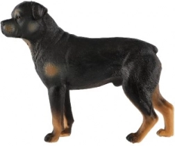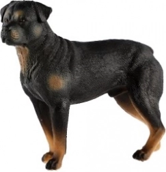 Figuren efterligner præcist rottweilerens træk og farver, hvilket gør den til en fantastisk dekoration eller legetøj til undervisningsformål.