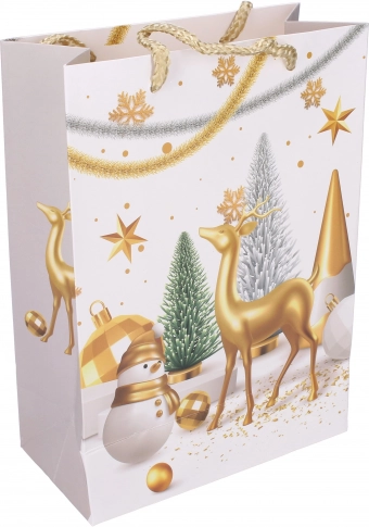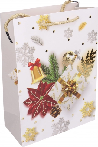 Julegavepose i størrelse L (31x40x12 cm) med fire motiver. Ideel til indpakning af festlige gaver.