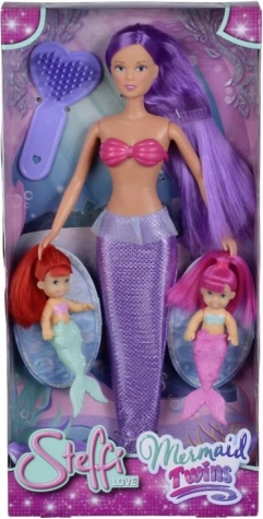Dukken Steffi som en smuk havfrue og to søde mini-havfruer inviterer børn ind i en verden af kreativitet og historier. Med langt, strålende hår og glitrende haler er sættet ideelt til rolleleg og udvikling af børns fantasi.
