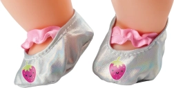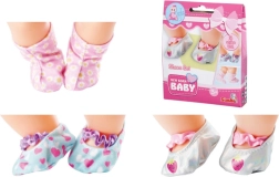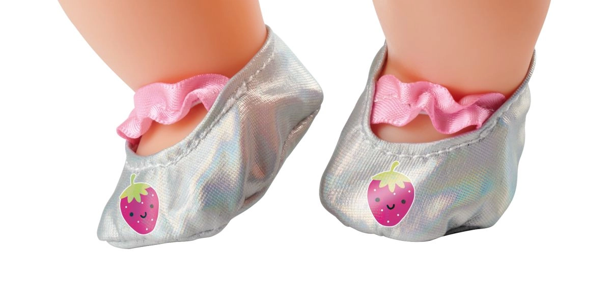 Sæt med 3 par stofsko (1x gummistøvler, 2x ballerinaer) i moderigtige farver og af moderne stoffer. Nemme at bruge og tage på. Ideelle til dukker med en højde på 30-43 cm.