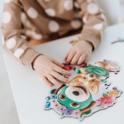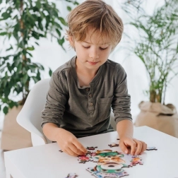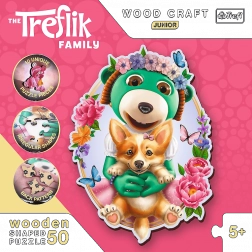 Træpuslespil fra premiumserien Wood Craft Junior tilbyder sjov og udfordring for børn med motivet De Glade Treflík'er. Puslespillet er dobbeltsidet, med unikt formede brikker og laserskåret præcision.