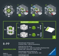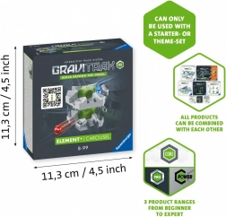 Karrusel-tilbehøret tilføjer dynamik og uforudsigelighed til dine GraviTrax PRO-baner. Kuglerne kan køre ind på karrusellen fra flere retninger, snurre rundt og fortsætte til næste niveau. Det understøtter på fremragende vis kreativitet, logisk tænkning samt interessen for fysik og rumlig geometri.
