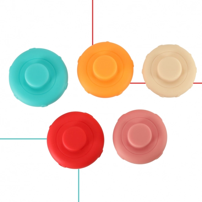 De bløde silikonedele er skånsomme mod børns gummer og fungerer som bidelegetøj under tandfrembrud. Sikkert og behageligt at røre ved.