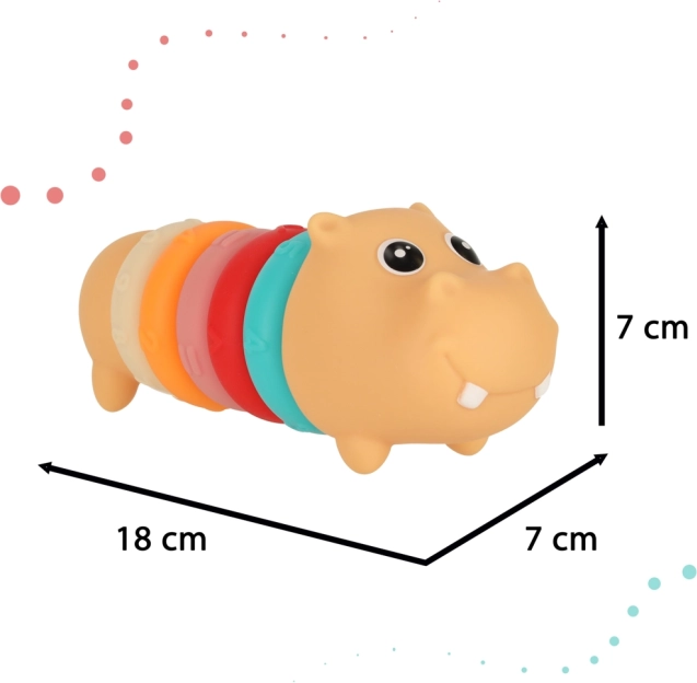 Dette farverige sansepuslespil i form af en flodhest forener leg og læring. Tal og matematiske symboler på ringene gør både fingertræning og udforskning af matematikkens grundlag sjovt. Den bløde, sikre silikone er behagelig at røre ved og ideel til små hænder.