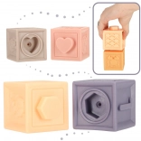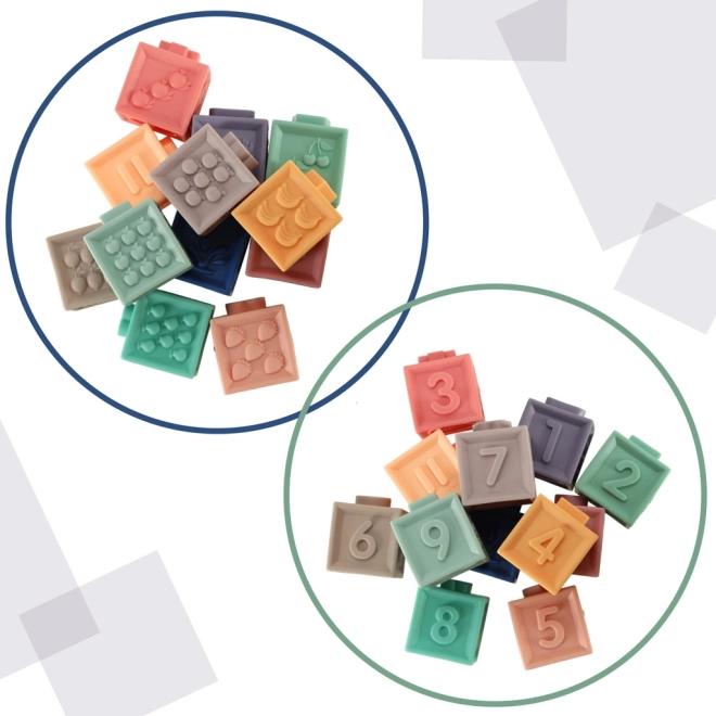 Takket være det blide, fleksible materiale er delene sikre fra 6 måneder og kan også bruges som bidelegetøj. Gennem leg styrker børn naturligt greb, øje–hånd-koordination og træner logisk tænkning ved at stable og lave simple regnestykker.