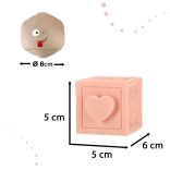 Klodserne er ca. 5 × 5 × 6 cm og boldene har en diameter på 6 cm – de er lette at gribe, stable og rulle, hvilket styrker grebet og øje–hånd-koordinationen.