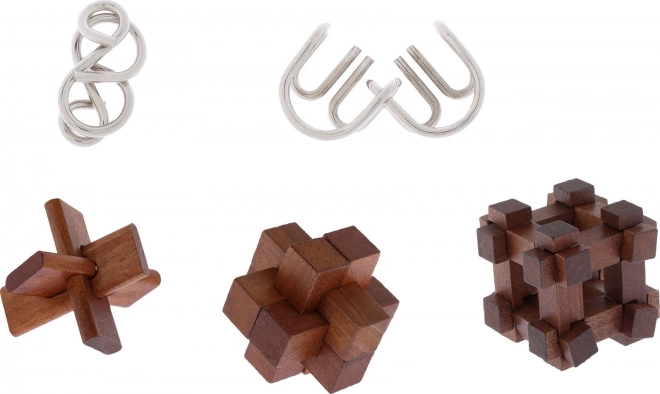 - 5 unikke puslespil – 3 i træ og 2 i metal