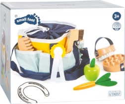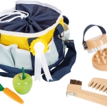Dette kvalitetslegesæt lader børn tage sig af deres yndlingshest som rigtige staldmedhjælpere. Posens brede snøråbning holder alle redskaber samlet, og sidelommerne giver overblik og hurtig adgang. I sættet finder du træredskaber til strigling, kæmning og rensning af hove samt en turneringsroset for festlig stemning.