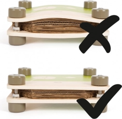Fire metalskruer med møtrikker giver et stærkt og jævnt tryk, som børn selv kan stramme.