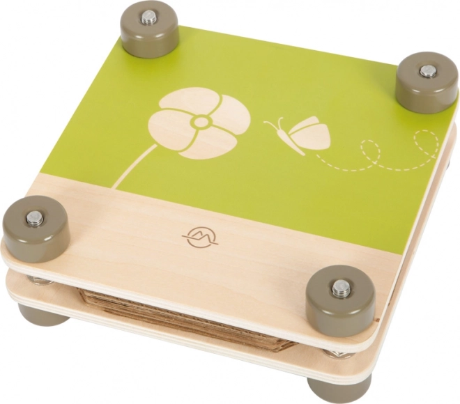 Denne kvalitets træpresse til blomster fra serien Discover er det ideelle redskab for små opdagere og kreative sjæle. De to solide træplader strammes let med fire metalskruer og møtrikker, så børn kan opnå et jævnt tryk og perfekt tørring af blomster, kronblade og græs.
