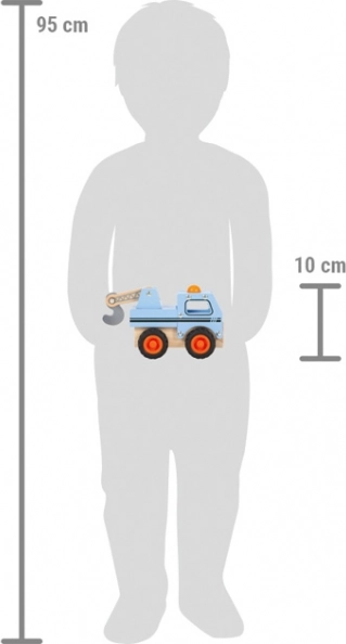 Dette robuste træ-bugseringskøretøj er ideelt til små bilentusiaster. Med den funktionelle kran med krog kan børn nemt simulere bugsering, udvikle fantasi og lære om rolleleg. Kabinen har plads til en figur (medfølger ikke), og de gummibelagte hjul sikrer stille og glidende bevægelse.
