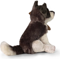 Den bløde, luftige pels i grå-hvide nuancer og de detaljerede broderier skaber en nuttet og samtidig naturtro ulv, som børn straks vil elske.