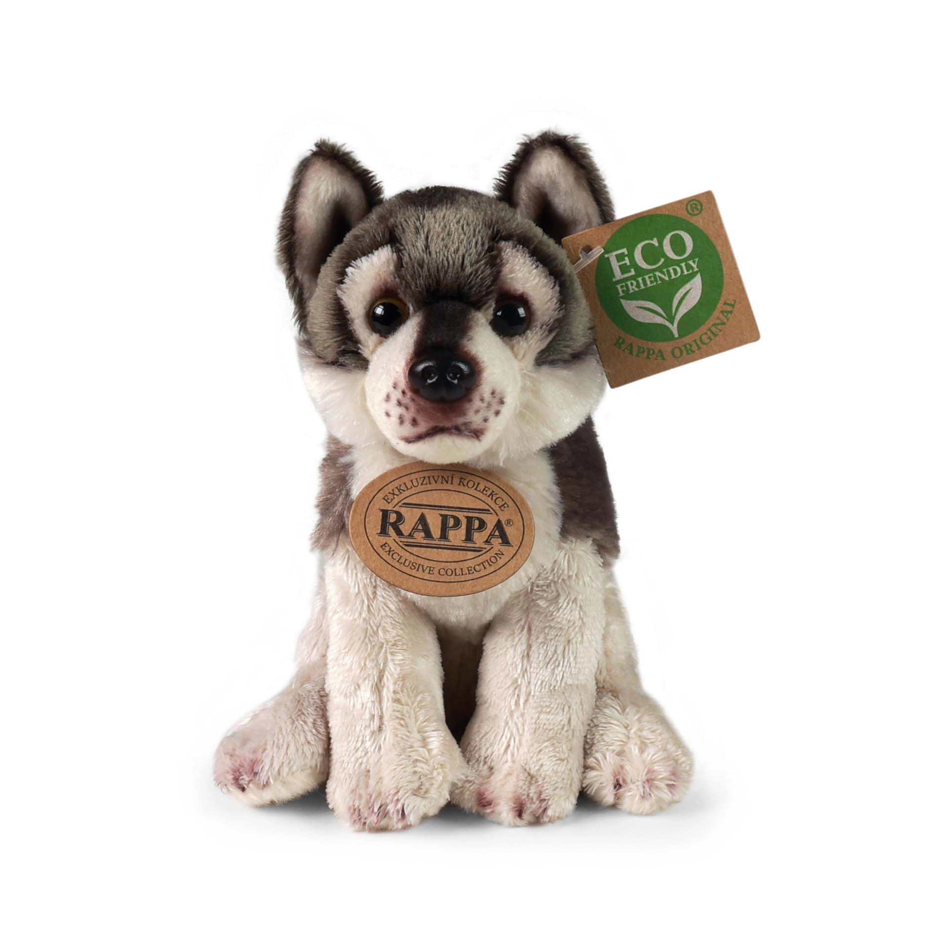 Denne bløde plysbjørn-ulv udmærker sig ved et realistisk udseende, omhyggeligt håndsyet finish og en fin pels, der nærmest indbyder til kram. Takket være den kompakte størrelse på 15 cm er den ideel til tremmesengen, barnevognen og på farten.