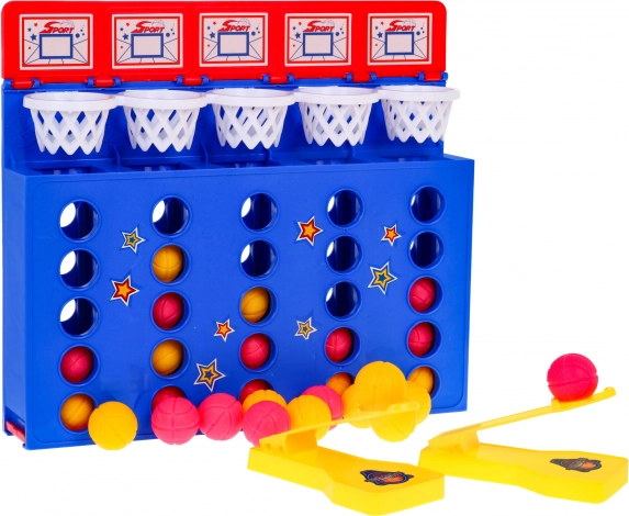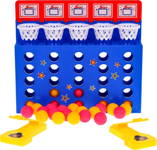 | Arkadespillet Fire på stribe er beregnet til børn fra 4 år. Spillets regler er meget enkle: du skal ramme en af de fire kurve med en kugle, så kugler i samme farve stiller sig på stribe – vertikalt, horisontalt eller diagonalt. Den, der først får 4 kugler i samme farve på stribe, vinder. På trods af udseendet er det ikke nogen let opgave, og masser af spænding sikrer god underholdning. |