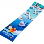 “Curling med pingviner” er et fængende færdighedsspil inspireret af curling. Rul spillemåtten med ismotive ud, stil pingvinerne på isflagerne, og forsøg med de farvede skiver at opnå den bedste score. Takket være den skridsikre struktur glider skiverne godt, mens måtten bliver liggende stabilt.