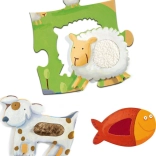 Indsatsbrikkerne med dyr har forskellige overflader, der efterligner pels, som inviterer børn til at udforske ved berøring og styrker sanseoplevelsen.