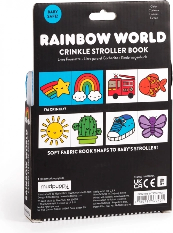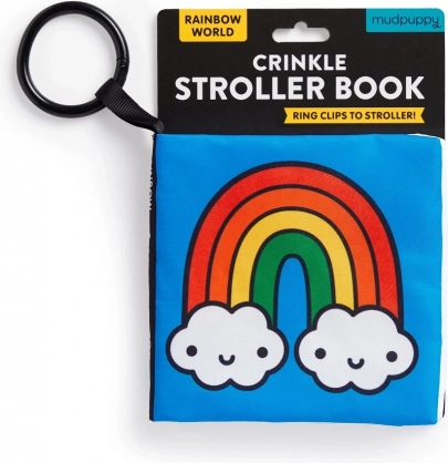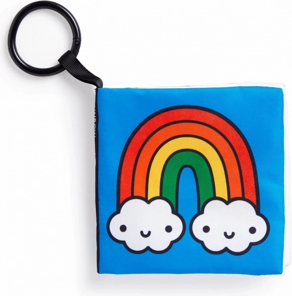 Stofbogen Regnbueverden tilbyder børn en sikker og sjov måde at udforske på. Kontrasterende farver, simple former og knitre-effekt på siderne vækker nysgerrigheden og udvikler både visuel og taktil perception. Den holdbare udførelse og nem fastgørelse med ring sikrer, at bogen altid er med, uanset om I er hjemme eller på tur.