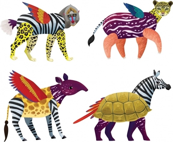 Skab skøre kombinationer og udforsk dyrenes farverige verden. Ideel til kreativ historiefortælling og legende læring.