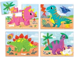 Opdag et sjovt sæt med fire puslespil med dinosaurmotiver, der vokser med barnets færdigheder – puslespil med 4, 6, 9 og 12 brikker giver en gradvis udfordring og masser af glæde. Kvalitetstryk med ugiftige farver, mat overflade og solid æske af genbrugsmaterialer sikrer lang levetid og flotte farver.