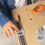 Komplet foldbart værksted til små handymen med 100 tilbehørsdele og 3 arbejdszoner: mekanisk værksted med bord, malestation med vask og VVS-zone med rør. Inkluderer boremaskine, skruestik, bordsav og bil til samling. Takket være de foldbare sidefløje og hjul er det let at flytte og understøtter kreativitet, finmotorik og hånd-øje-koordination.