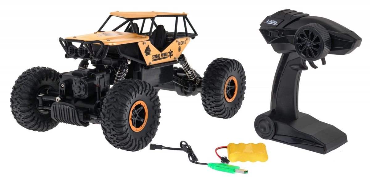 Oplev adrenalinfyldt kørsel med den robuste RC Crawler Monster terrængående bil i skala 1:18. Takket være 4x4-træk, store gummidæk og effektiv affjedring klarer den selv krævende terræn. Styring på frekvensen 2,4 GHz sikrer stabilt signal uden forstyrrelser, mens 4,8 V 700 mAh batteriet giver op til 20 minutters kørsel pr. opladning.