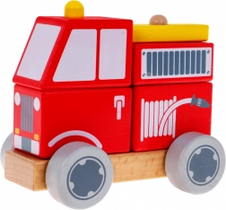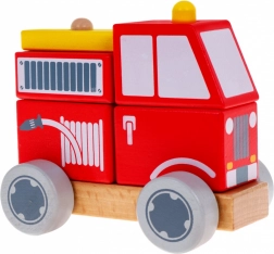 Byg din egen brandbil af sættet med træklodser. Barnet sætter delene på to pinde på basen og skaber et enkelt puslespil, der understøtter hånd-øje-koordination, tålmodighed og logisk tænkning. Glat forarbejdet træ og holdbare farver er venlige for små hænder og miljøet.