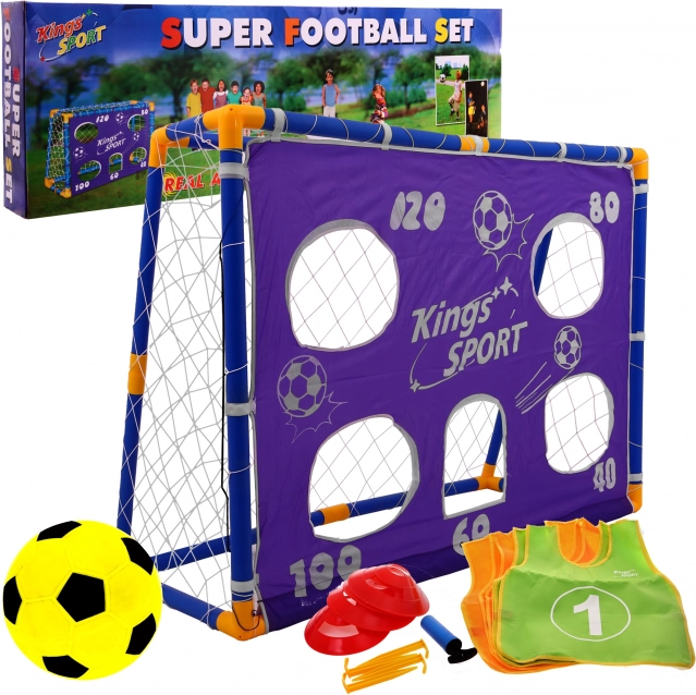 Gør din have til en fodboldlegeplads med dette komplette fodboldsæt til børn. Sættet indeholder ikke kun et mål, men også en træningsdug, bold, pumpe og tilbehør til afholdelse af sportsaktiviteter. Med den lette og bærbare konstruktion kan du nemt gøre klar til kampe når som helst og hvor som helst.