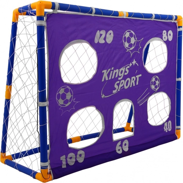Mini fodboldmål med blå-orange plastikramme er ideelt til udendørs sjov.