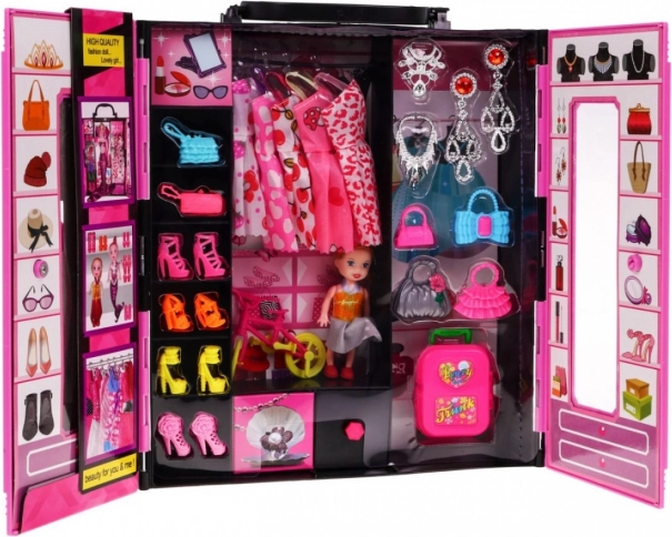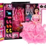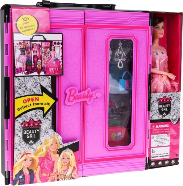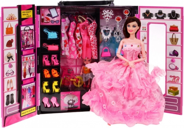 Garderobe med dukke er et fantastisk, stort og farverigt sæt, som er enhver lille piges drøm. Dette sæt indeholder 30 elementer og har et håndtag for nem transport, så dit barn kan tage det med overalt.