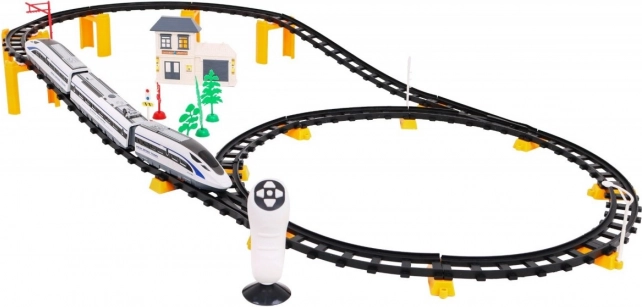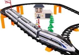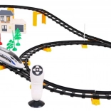 Dette fantastiske sæt indeholder 52 dele med en samlet banelængde på 396 cm. Toget styres med en fjernbetjening, som gør det muligt at køre både frem og tilbage. Skinnerne har et enkelt og solidt system til samling, hvilket garanterer sikkerhed og holdbarhed. Tog og vogne er lavet af kvalitetsplast for lang levetid.