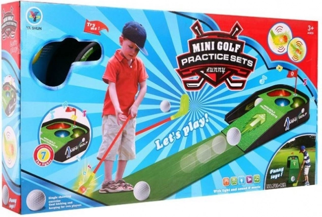 Dette mini-golfsæt indeholder alt, hvad du behøver for at spille golf når som helst og hvor som helst. Takket være de lys- og lydeffekter giver det en unik oplevelse, der fanger både små og store spillere.