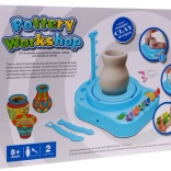 | | Sættet til den lille pottemager er et pædagogisk legetøj til at lave og male keramiske beholdere. Børn kan lave deres egne krukker, kopper eller kander og derefter dekorere dem med farver efter eget valg. Drejeskiven roterer i to hastigheder, langsom og hurtig. Legetøjet stimulerer fantasien og udvikler fingerfærdighed, manuelle og kunstneriske evner. Legetøjet er egnet til børn fra 8 år og har CE-certifikat. Legetøjet drives af 3 x R14-batterier (medfølger ikke). |