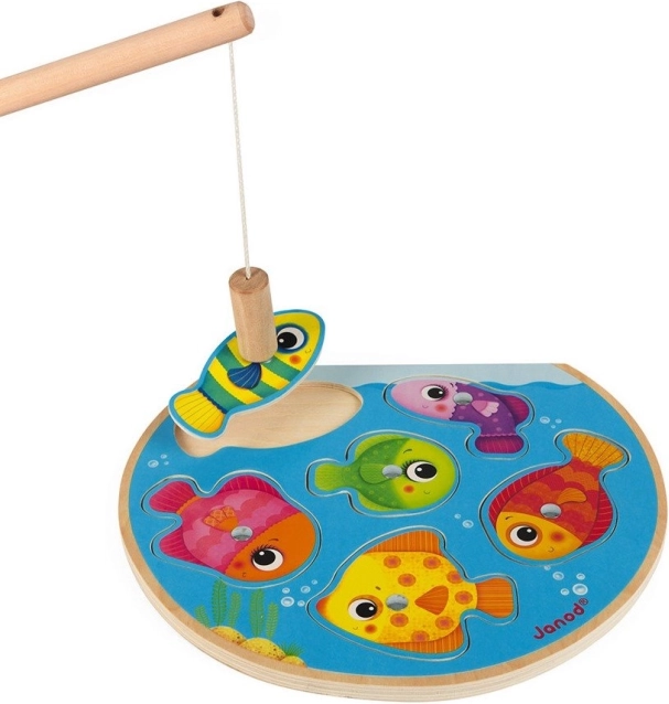 Oplev det første magnetspil til de mindste: en træ-puttekasse med fisketema fra JANOD. Takket være den magnetiske fiskestang kan børn nemt “fange” de farverige fisk og lære at lægge dem tilbage på den rigtige plads. Legen understøtter på en sjov måde tålmodighed, præcision og koncentration.