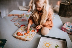 Børn placerer farvede cirkler efter forlæg, træner genkendelse af farver, mønstre og koncentration – sjovt og uden pres.