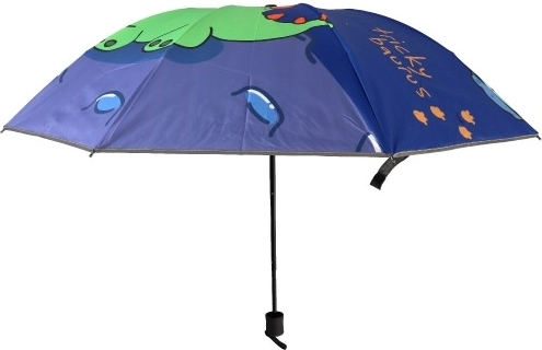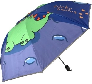 Denne børneparaply med et muntert dinosaurmotiv er designet til at charmere ethvert barn. Med en diameter på 90 cm giver den tilstrækkelig beskyttelse mod regn, og takket være reflekterende kant vil du altid være godt synlig selv i gråvejr. Foldet måler den kun 25 cm, hvilket betyder, at den let kan passe i en skoletaske eller rygsæk. Den ideelle følgesvend til skole, børnehave eller udflugter!