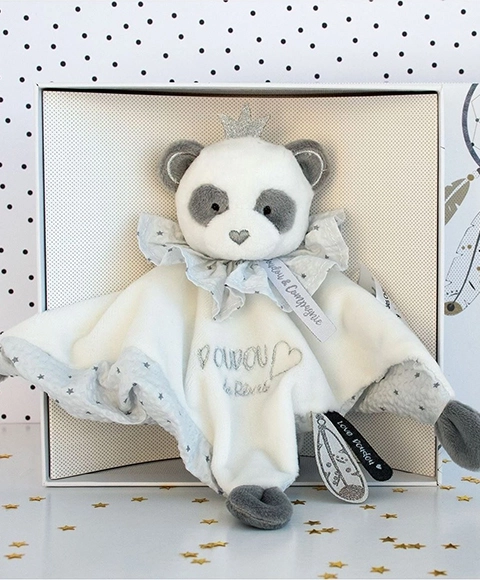 Det højkvalitets plys krammetæppe panda er designet til at udvikle dit lille mirakels sanser og nysgerrighed. Med blide harmonier af moderne farver og førsteklasses materialer vil det blive en favoritven ikke kun for de mindste, men også ældre børn.