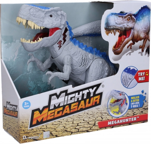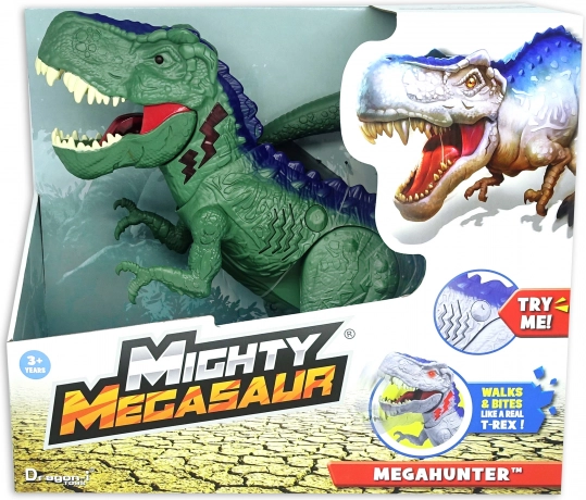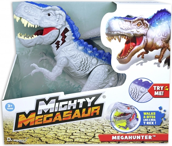 Dinosaurus Mighty Megasaur Megahunter fascinerer ethvert barn med sit realistiske udseende, imponerende kæber og dynamiske bevægelser. Dette legetøj er udstyret med lys- og lydeffekter, der forstærker atmosfæren fra forhistorisk tid under leg. Takket være bevægelsesfunktionerne kan legetøjet dreje hovedet og halen, hvilket giver børnene indtryk af at have med en levende dinosaur at gøre.