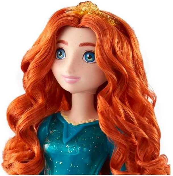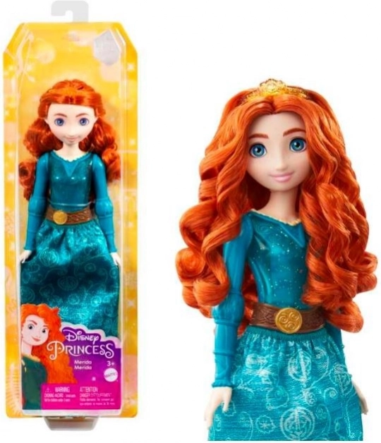 Oplev eventyrets magi med dukken Disney Princess Merida, inspireret af den selvsikre og modige heltinde fra filmen Modig. Denne bevægelige modedukke har et glitrende outfit, langt, let at rede hår og a aftageligt tilbehør – sko og en gylden krone. Ideel til kreativ leg, genopførelse af yndlingsscener og opfindelse af egne eventyr.