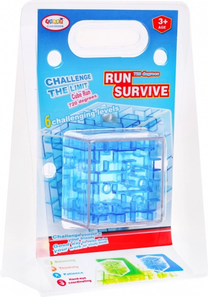 | 3D labyrintterning med kugle er et legetøj til børn fra 3 år. Den egner sig perfekt til brug derhjemme eller på farten. Inde i terningen er der en lille metal kugle, som skal føres gennem labyrintens gange fulde af sving og blindgyder helt frem til målet. På trods af udseendet er det ikke så let; det kræver en masse tålmodighed, finmotorik, koncentration og opmærksomhed. Legetøjet er vanedannende og giver timevis af lærerig underholdning, og glæden ved at nå målet er uvurderlig. |
