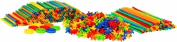 Stort byggesæt – byggesugerør er et legetøj til børn fra 3 år. Sættet indeholder op til 800 dele, som dit barn kan bruge til at bygge mange fantastiske konstruktioner som tårne, køretøjer, broer, bygninger m.m. Pindene forbindes perfekt med hinanden ved hjælp af stik. De leveres i forskellige farver: grøn, rød, blå, orange og gul. Hele sættet er pakket i en plastkasse med bærehåndtag. Sættet indeholder også en illustreret vejledning med eksempler på konstruktioner, der kan bygges. Leg med sugerør udvikler barnets fantasi og lærer kreativ og logisk tænkning.
