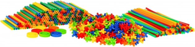 - 100 lange sugerør, - 300 korte sugerør, - 400 forbindelsesdele i forskellige former, - klikboks, - illustreret vejledning. | |