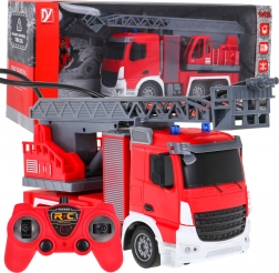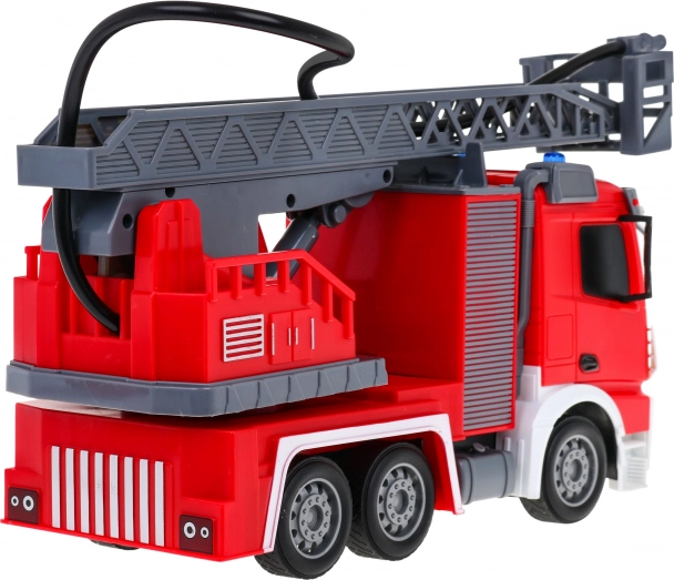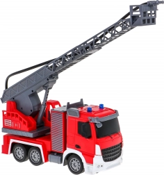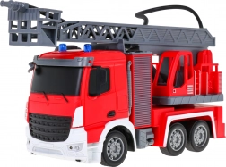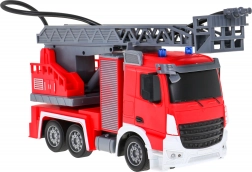 | | Stor interaktiv brandbil med bevægelig og drejelig stige, vandslange og mange funktioner, beregnet til børn fra tre år. Køretøjet styres med en fjernbetjening på 2,4 GHz. Kører frem og tilbage og drejer til højre og venstre. Har gummidæk og gummispejle. Legetøjet har lydfunktion – lyd ved hævning og udtrækning af brandstigen – og lysfunktion – forlygter og blinkende lys på toppen af køretøjet ved hævning og sænkning af kranen. Brandstigen kan forlænges, hæves og sænkes og drejes 180 grader. Køretøjet er udstyret med en vandslange, som sprøjter vand! Legetøjet drives af et 500 mAh 3,7 V batteri (inkluderet), fjernbetjeningen bruger 2 x AA 1,5 V batterier (medfølger ikke). Brandbilens funktioner: - skala 1:12, - kørsel frem og tilbage samt drejning til højre og venstre, - gummihjul, - gummispejle, - baghjulstræk, - justerbar styring, - hævning, sænkning og udtrækning af brandstigen, - 180 graders drejning af stigen, - slange med påfyldning af vand, - forlygter, - blinkende lys på toppen af køretøjet ved sænkning og hævning af stigen, - lyde ved hævning og sænkning af stigen. |