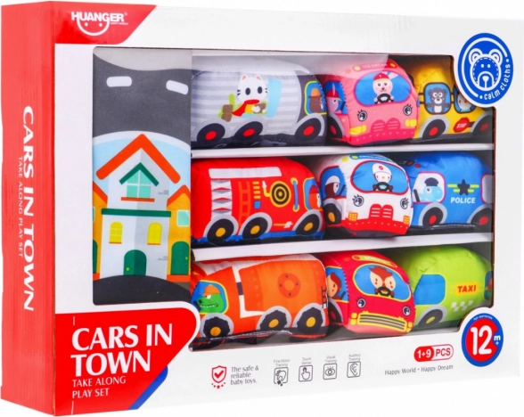 Opdag sjov for de mindste: et sæt med 9 bløde tekstilbiler og et farverigt legeunderlag med veje og by. Bilerne er sikre, behagelige at røre ved og byder på forskellige lydeffekter – knitren, klirren og piben. Underlaget kan takket være praktiske velcrobånd nemt laves om til en taske til transport. Hele sættet kan maskinvaskes ved lav temperatur, så det altid er rent og klar til leg.