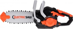 En realistisk elektrisk legetøjskædesav sørger for timevis af sikker haveleg. Den byder på en bevægelig gummikæde, lydeffekter som en rigtig sav, og i pakken finder du også beskyttelsesbriller for endnu sjovere og tryggere lege. Den lette plastkonstruktion, nem betjening og det attraktive sort‑grå design med orange detaljer vil glæde enhver barn.