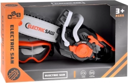 Denne elektriske legetøjssav er designet til fantasifuld leg og til at lære sikker håndtering af værktøj. Den roterende gummikæde er blød og sikker, men ser realistisk ud. Når du trykker på knappen, starter saven og ledsages af autentisk lyd, som forstærker legeoplevelsen.