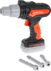 Børnevenlig elektrisk boremaskine til 2× AA (medfølger ikke) giver en realistisk legeoplevelse. Inkluderer flad- og krydskærvsbit samt bor til forskellige opgaver.