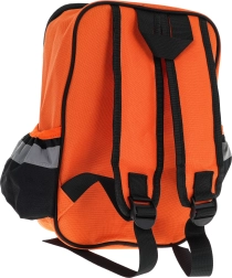 Let tekstilrygsæk med hovedrum med lynlås, ydre lommer og reflekselementer holder værktøjet overskueligt og sikkert samlet ét sted.