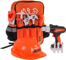 Dette kreative gør-det-selv-sæt i en orange rygsæk giver børn en realistisk oplevelse med værktøj – sikkert og sjovt. Med boremaskine på 2× AA-batterier (medfølger ikke) og udskiftelige tilbehør kan de små byggere prøve at spænde, bore og samle. Beskyttelseshjelmen forstærker rollen som lille mester og lærer grundlæggende sikkerhed.