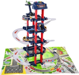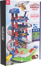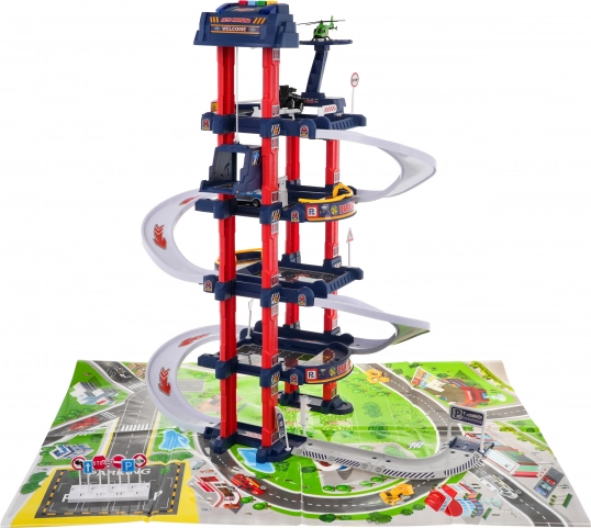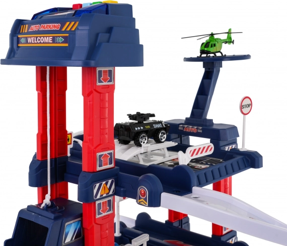 Det fleretagers parkeringshus tilbyder parkeringspladser, en tankstation, en donkraft til biler og en heliport. Betjeningspanelet med farvede knapper styrer elevatoren og aktiverer effekter: Den røde knap kører elevatoren ned, den gule løfter den op. Den blå knap afspiller lyde af politi, brandvæsen, ambulance, motorstart og skud, den grønne knap aktiverer hornet. På panelet blinker blå og røde lys, som forstærker stemningen i legen.