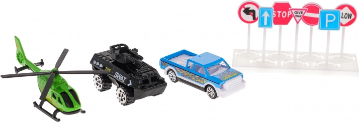 Sættet suppleres af et stort legeunderlag med veje for at udvide legeuniverset samt to metalbiler i skala 1:64. Takket være den intuitive betjening er legetøjet velegnet til børn fra 3 år og støtter motorik, fantasi og grundlæggende trafikkendskab.